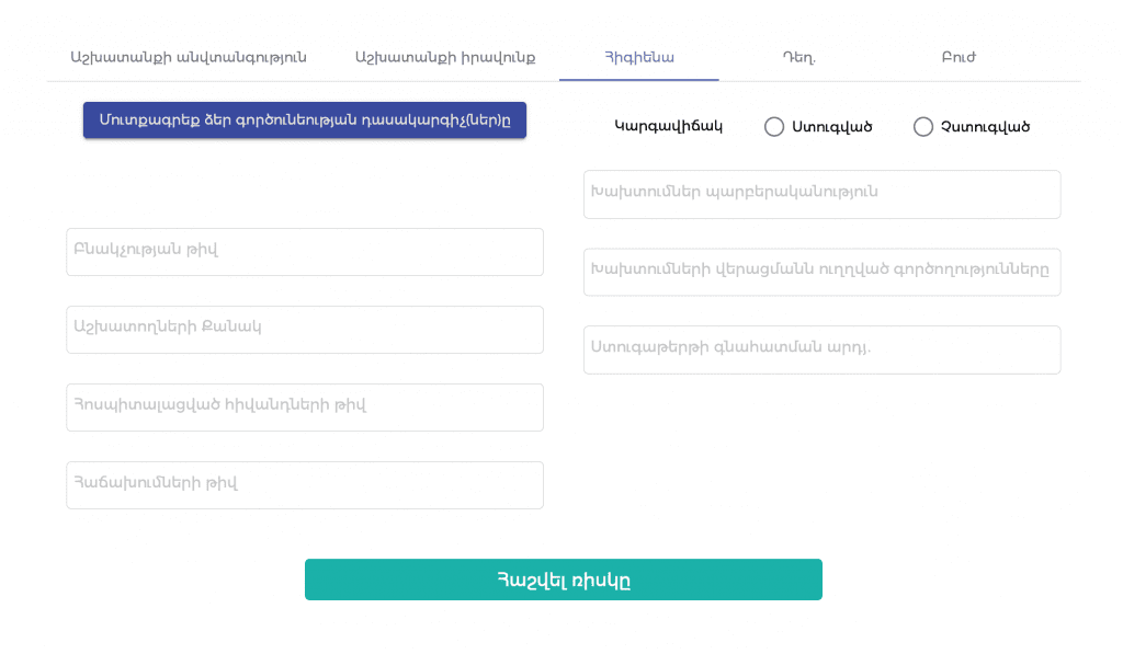 Համակարգը նախատեսում է ռիսկերի հաշվարկման հաշվիչ, որի պարզ տարբերակը հասանելի կլինի նաև տնտեսվարող սուբյեկտներին՝ պարզելու իրենց ռիսկայնության աստիճանը՝ մուտք անելով պահանջվող տվյալները։